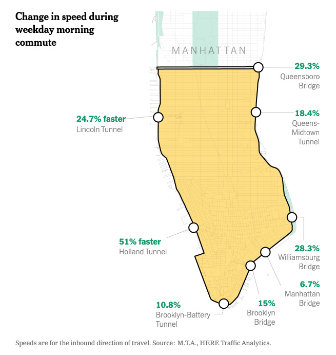 Since congestion pricing began one year ago, about 11 percent of the vehicles that once entered Manhattan’s central business district daily have disappeared.