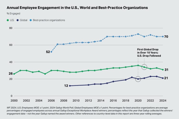 Gallup has detailed disengagement of the workforce in State of the Global Workforce 2025 report, which is just what Newlyn’s observations would suggest: