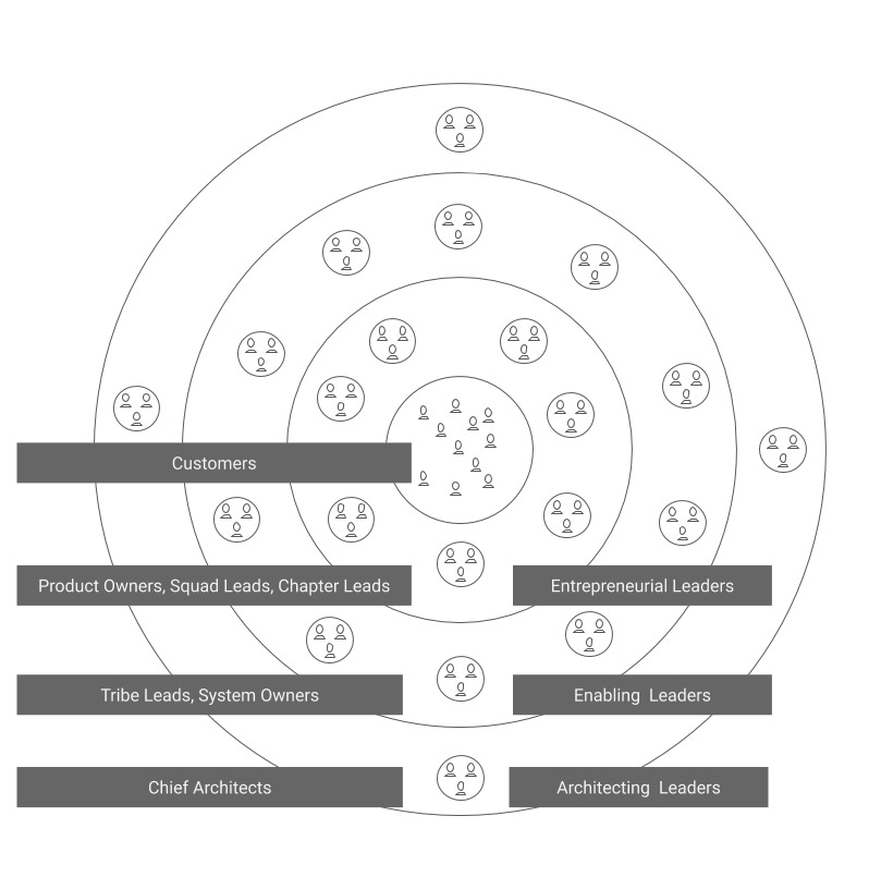 A chapter is a network of individuals with similar skills working in similar competency areas, for example, testing, database, or machine learning. The chapter lead acts somewhat like a line manager, developing chapter members skills, and notably setting salaries based on the standards for those kinds of skills. So people can switch squads while ‘reporting’ to the same chapter lead. Note that the setting pay scale aspect of the chapter lead role is quite a departure from the startup orientation of squads since in an actual startup, the founder/owner would set salaries. (In Haier’s microenterprises (MEs), the ME leader and team are almost totally responsible for that.)